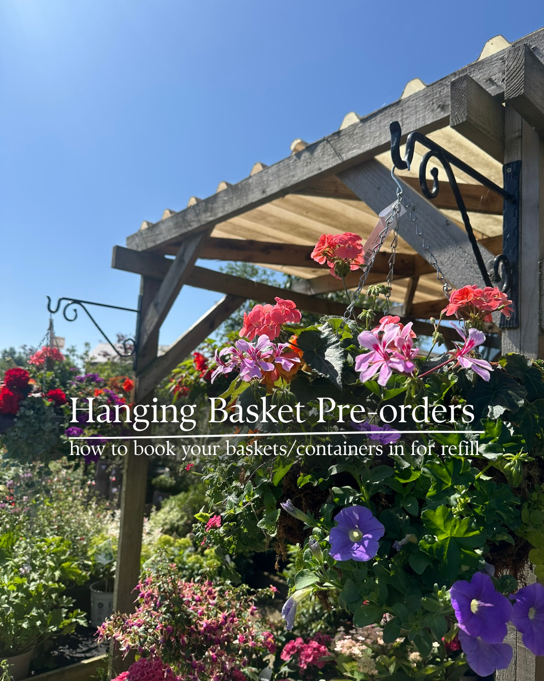 Welcome in the new season by pre-ordering your summer hanging baskets and planted containers. Alongside our ‘off the shelf’ baskets and containers, we also offer a refill service. Find out more below!