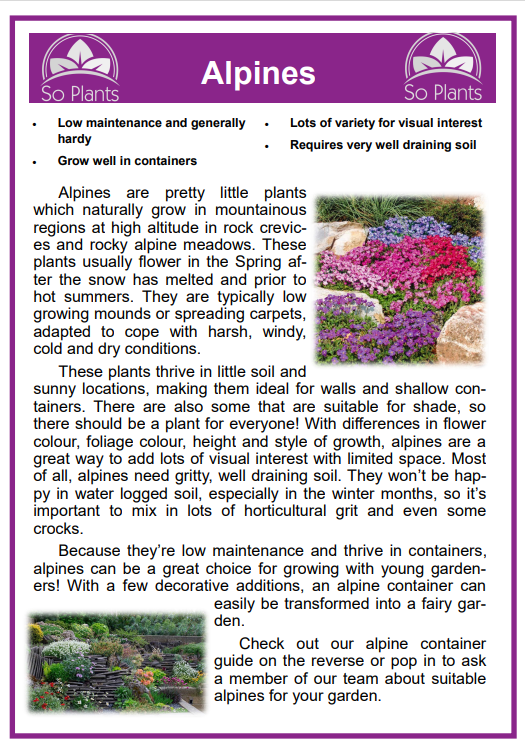 Our first batch of alpines has just arrived at the garden centre and there’s lots to choose from!