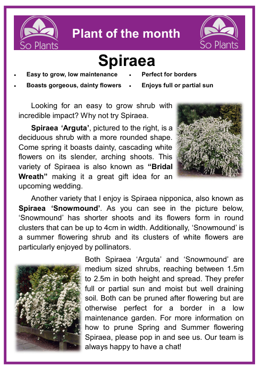 Here’s an underrated spring plant - Spiraea. Easy to grow, low maintenance and boasts a gorgeous display of dainty flowers - what’s not to love?