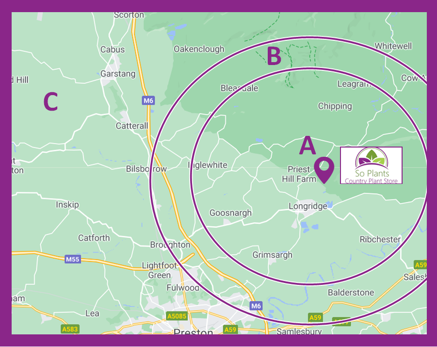 We offer delivery to the local area! Please check out our delivery map (pictured right) for delivery charges to your address.